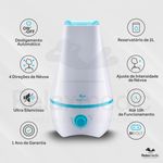 Além de ser ultra silencioso, o que torna o produto apropriado para bebês e idosos a pulverização pode ser ajustada livremente de acordo com as necessidades.