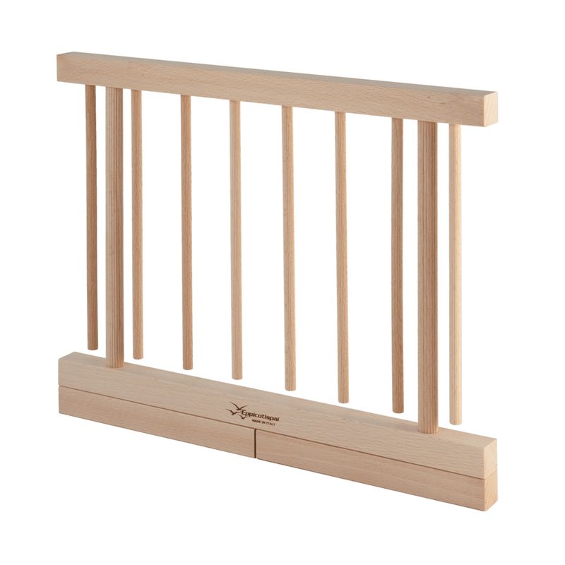 O Varal para secar madeira é essencial, a circulação de ar entre as varetas permite que a massa seque rapidamente. Muito fácil de guardar, bastando dobrá-lo. A circulação de ar entre as varetas permite que a massa seque rapidamente. Muito fácil de guardar, bastando dobrá-lo. Fabricado em Faia, típica madeira da Europa com diversas certificações, entre elas  as que são florestas tratadas com métodos que respeitam o meio ambiente e as convenções sociais e econômicas pré-acordadas e a que gerante a higinização e não existência de problemas sanitários durante todo o processo de produção. também possuem registro no "FDA" americano, liberando seu contato com alimentos.