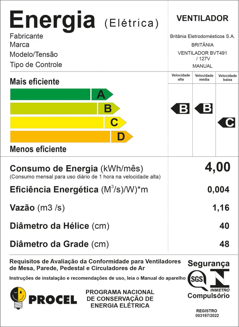 Os 174W de potência do Ventilador Britânia BVT491 garantem maior poder de ventilação para dizer adeus aos dias quentes.