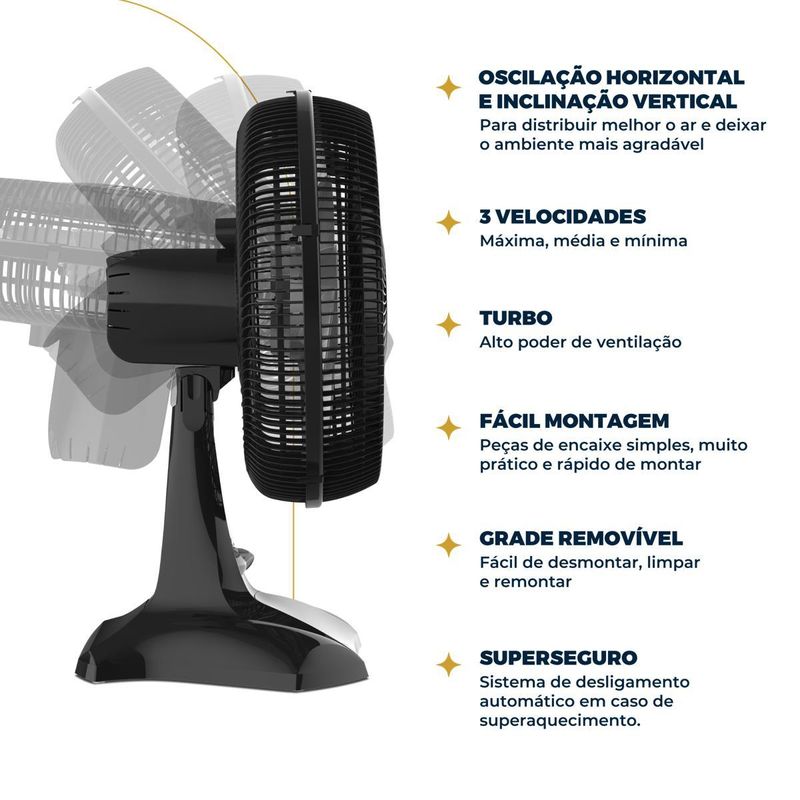 • Oscilação horizontal automática com novo sistema de acionamento (botão integrado à carcaça)