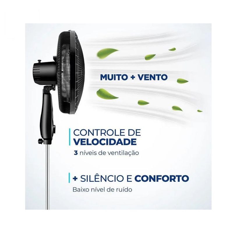As 3 opções de velocidade permitem adequar o vento à sua necessidade: Máxima Turbo, Média Conforto e Mínima Silencioso.