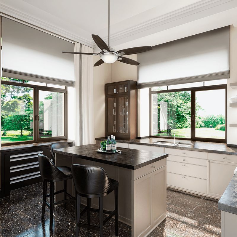 O ventilador Hunter Fan possui o selo Procel categoria A, classificação pelo baixo consumo de energia. Além disso, o uso em conjunto com o condicionador de ar reduz o consumo total de energia na refrigeração do ambiente.