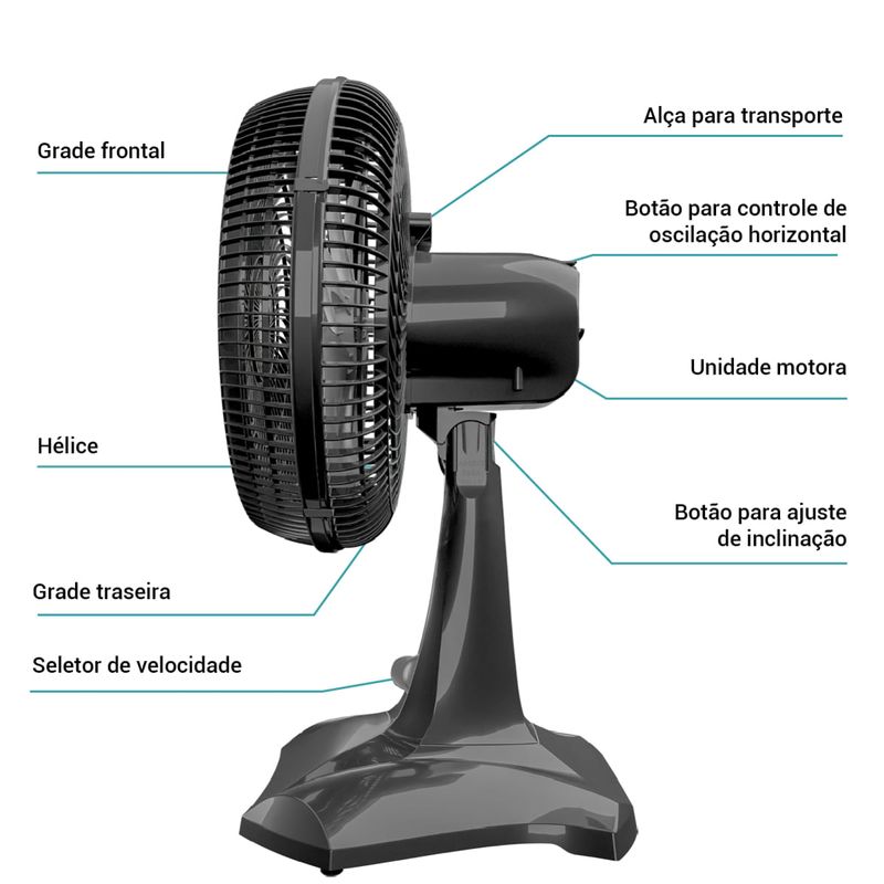 • Oscilação horizontal automática com novo sistema de acionamento (botão integrado à carcaça)