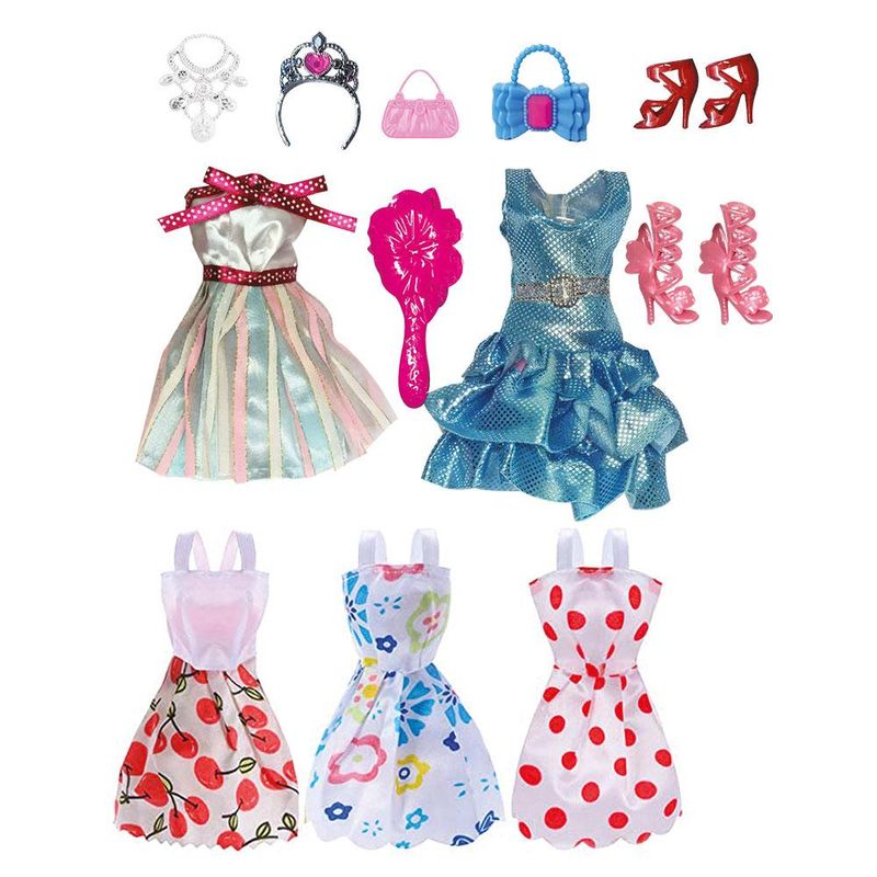 A linha Doll Dress apresenta um universo de cores e glamour! São roupas estilosas e que vão deixar suas bonecas muito lindas. Esse kit acompanha cinco vestidos de diferentes modelos e vários acessórios, como sapatos. A brincadeira vai ficar muito mais fashion e divertida!